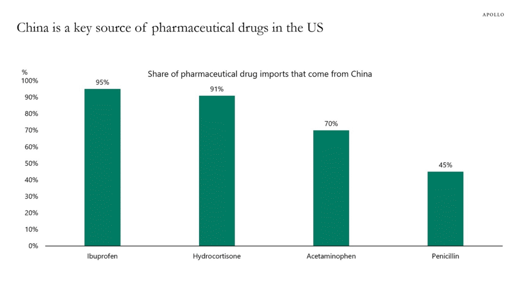 Dependence on China means that a large share of the active pharmaceutical ingredients (APIs) and key starting materials used in U.S. medicines are produced in Chinese factories. These are the core chemical components that make drugs effective, so if their supply stops, American companies cannot easily make the final products.